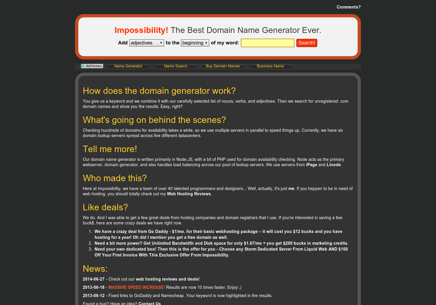 Impossibility The Best Startup Domain Name Generator Ever Product Hunt